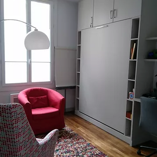 Les deux bureaux peuvent se transformer le soir en chambres à coucher grâce à deux lits-placard conçus par un artisan-menuisier.